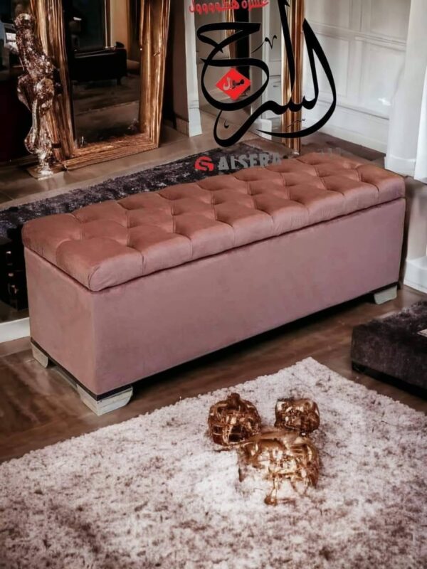 🔹 في غرفة النوم: يوضع عند أسفل السرير ليكون مكانًا أنيقًا للجلوس مع توفير مساحة تخزين إضافية.